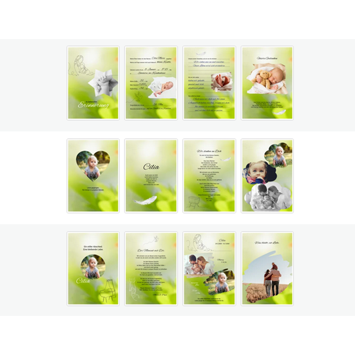Es ist eine Sammlung liebevoll gestalteter Mustervorlagen, mit denen du Erinnerungen festhalten und dein Gedenken bewahren kannst.