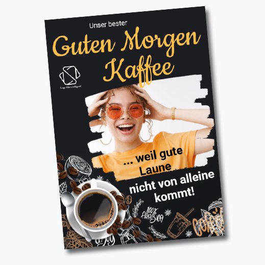 Wieso still und heimlich für Kaffee werben, wenn du auch ordentlich auf die Kaffeetrommel hauen kannst? Ein Plakat Kaffee to go mit einem frechen Spruch wie „Komm rein, wir haben Koffein!“ oder „Müde? Wir helfen nach!“ bringt Passanten nicht nur zum Schmunzeln – es bringt sie auch direkt an deinen Tresen.